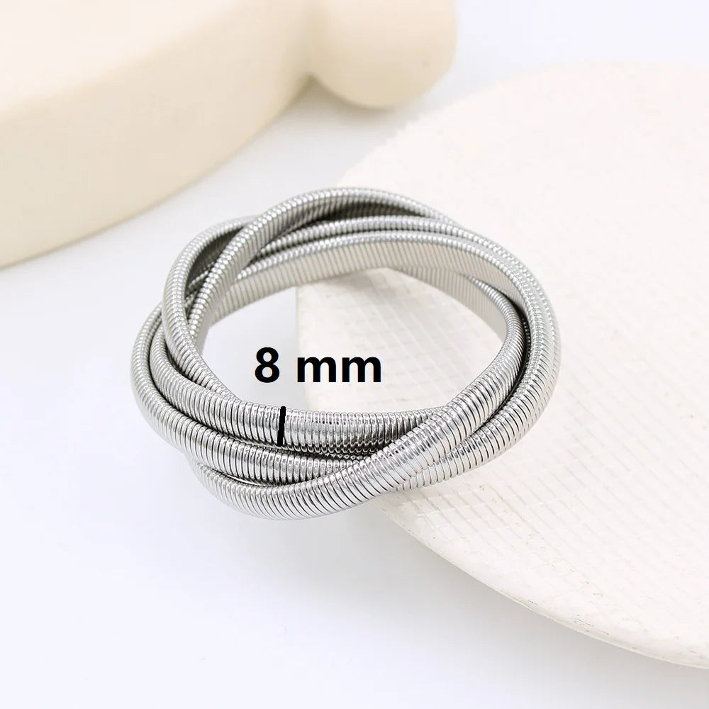 Its vintage-inspired polished surface reflects light with subtle depth, while the elastic structure ensures a comfortable, adaptive fit that moves naturally with the wrist. The design balances strength and softness, creating a piece that feels both bold and elegant.