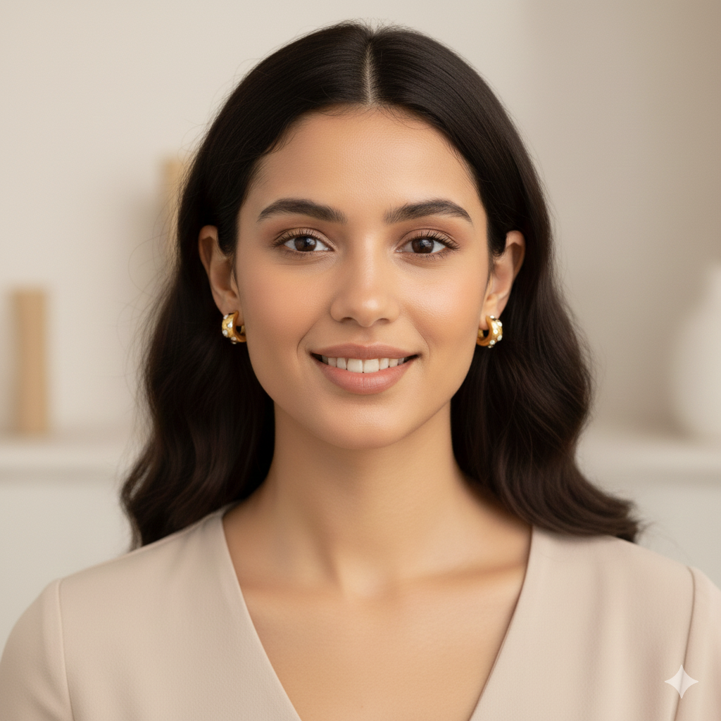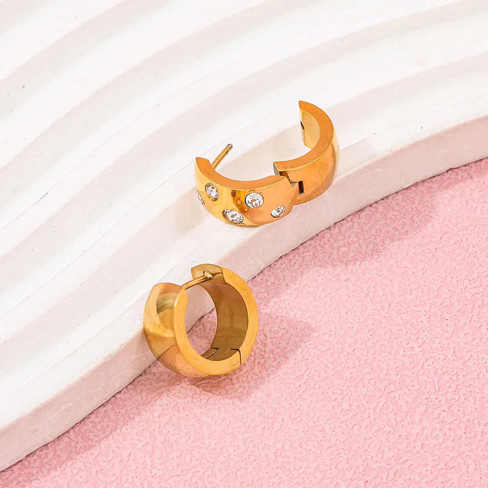 Their slim profile and sophisticated shine make them the perfect balance between subtle and statement. Lightweight, non-tarnish and crafted for everyday comfort, they elevate both casual outfits and evening ensembles with effortless elegance.