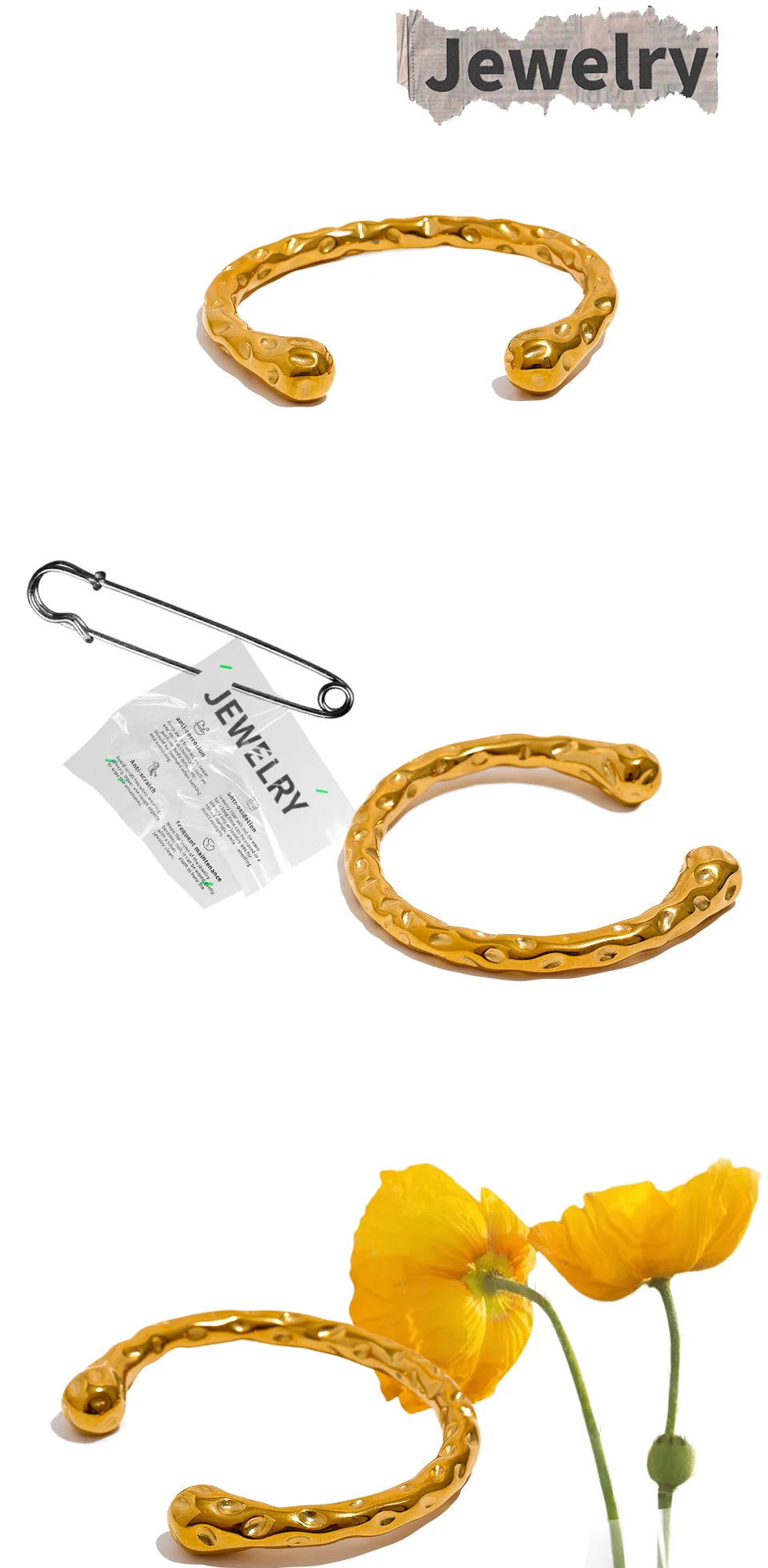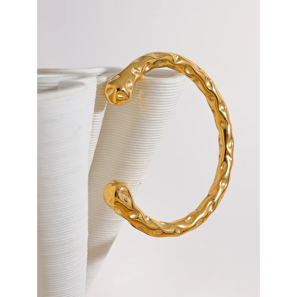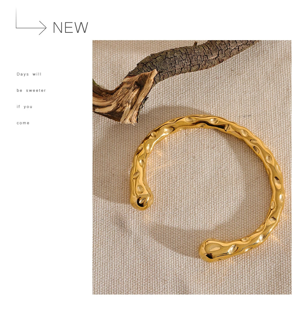 Radiant Resilience: Gold-Plated Hammered Stainless Steel Bracelet
